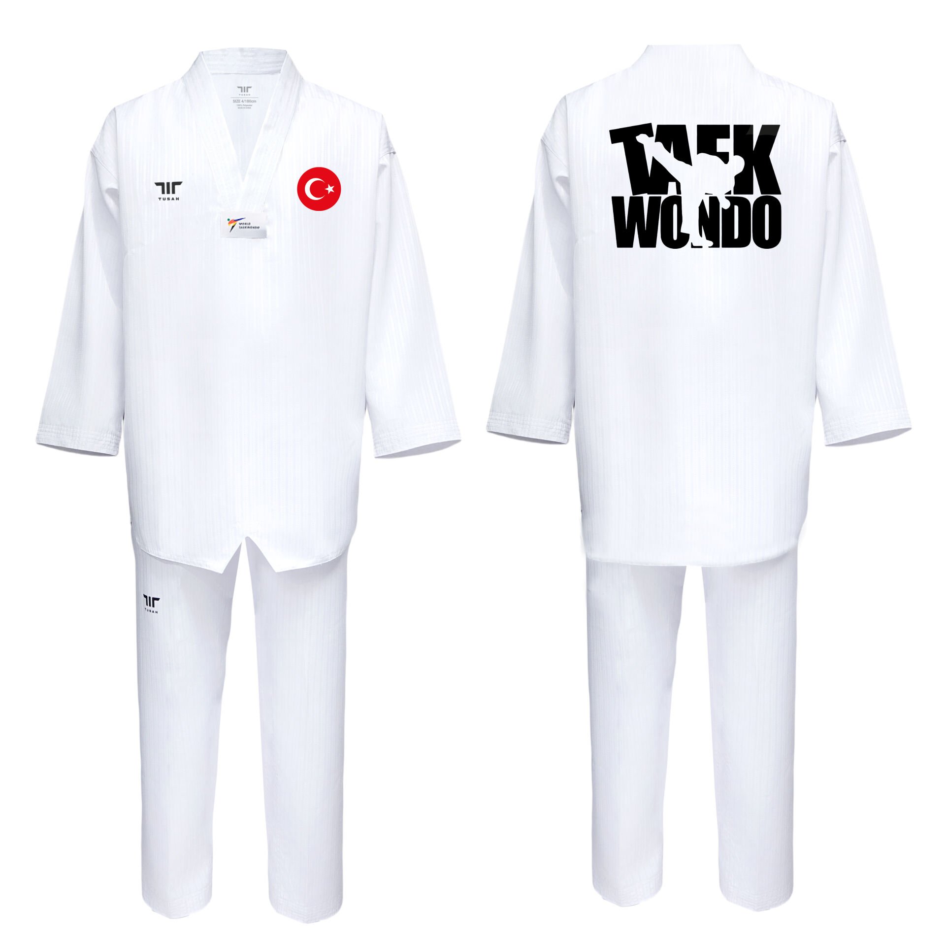 TUSAH Beyaz Yaka Taekwondo Elbisesi WT Onaylı Dobok Tekvando Baskılı
